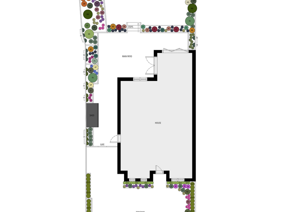 The detailed plan view of the site will include all the above and the location of current plants and trees, levels, steps, drainage and lighting and any other features.